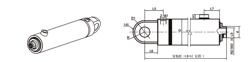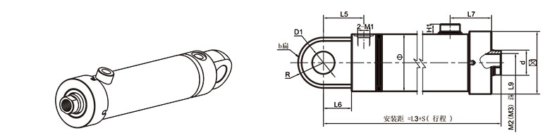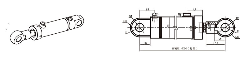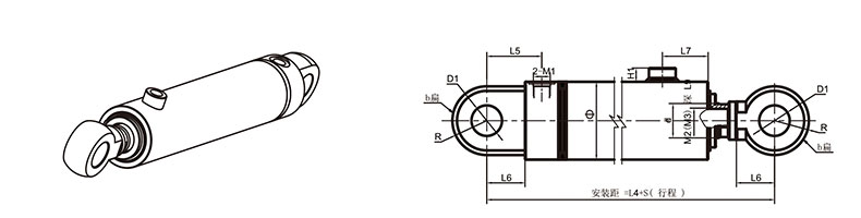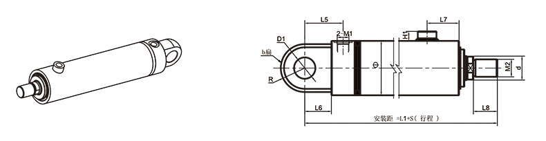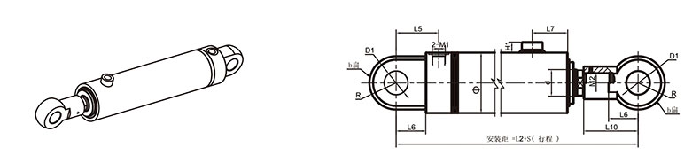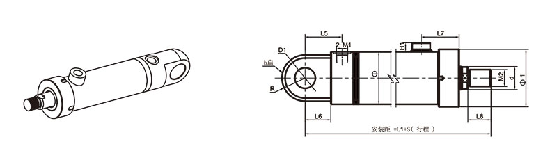 活塞桿端為外螺紋桿頭耳環連接