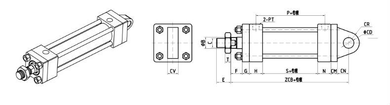 標(biāo)準(zhǔn)HOB+CA型 單耳型外形安裝尺寸圖