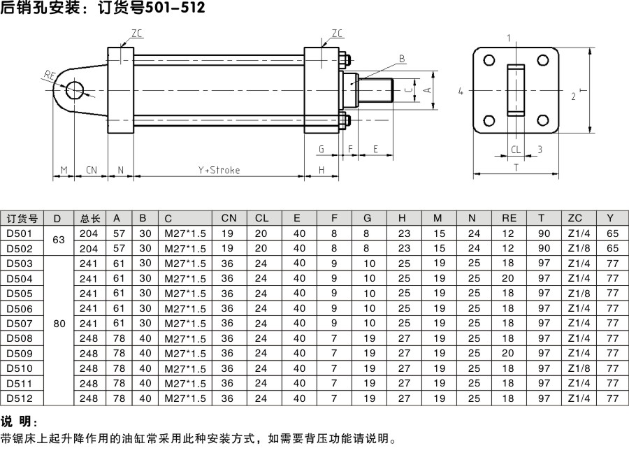 后銷孔安裝升降液壓缸