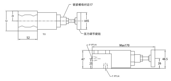2、遙控型是有BG(T)、BHG(T)、要SBG系列先導溢流閥遙控口的連接,此系列溢流閥做為遙控二段壓力或多段壓力控制。