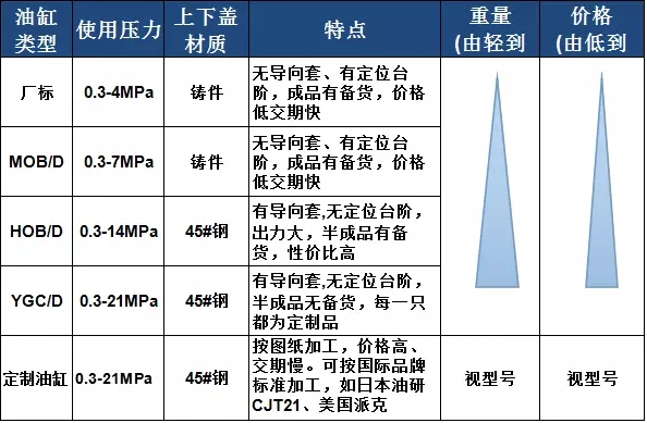 MOB拉桿油缸有定位臺階,HOB與YGC/YGD油缸無定位臺階。